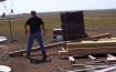 Deron enclosing the barn just before a huge storm