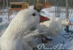 Blue Eyes - Sebastopols are so striking with those curly bright white feathers and crystal baby blues! 2012-02-16 23:33:15