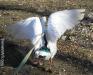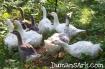 Pilgrim pair of Geese - gander is white on left, goose is grey and white on right 2011-12-10 23:22:17