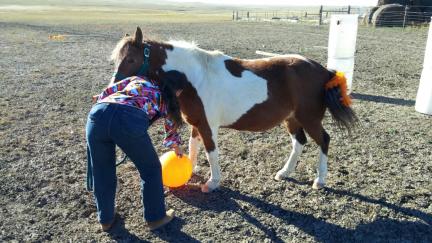 | horse trick tricks agility equine kick the ball set up train training teach teaching |