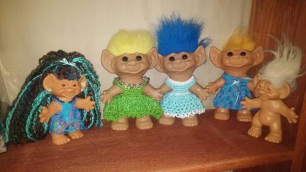 | troll doll diy restoring restoration how to hair clean clothes crocheted dress outfits dolls trolls collection |