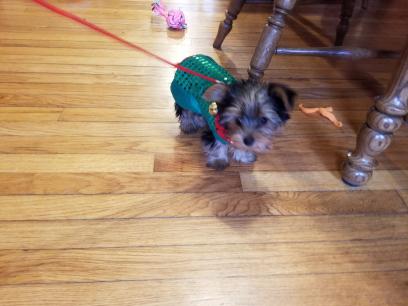 | yorkie christmas coat yorkshire terrier outfit puppy pattern made from stocking bells bell |
