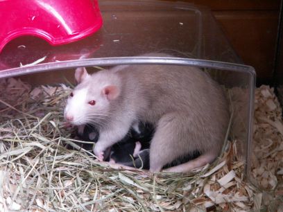 Ruby (mom) with babies - 2008-03-09 11:04:37