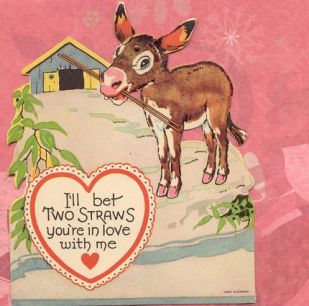 | old vintage donkey burro valentine's day card |