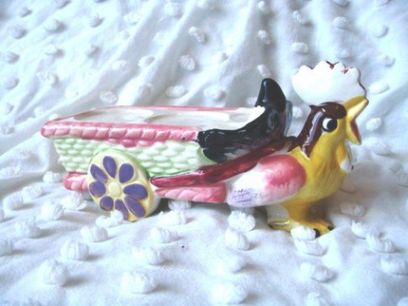 | vintage toy chicken cart rooster pulling harness harnessed |