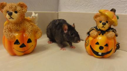 Miss Midnight with her Halloween Pumpkin Bears - 2012-09-07 02:36:37