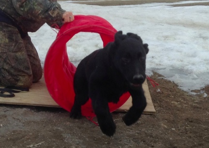 | open tunnel agility equipment turquoise german shepherd dog puppy training |