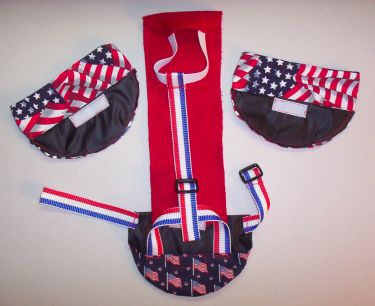 This Goose Diaper Holder Harness is made with USA Flag Print, backed with a waterproof fabric and it is oh so cute for any day of the year, but especially cute for 4th of July, Memorial Day, Summer Bar-B-Ques and or Labor Day . This Goose Diaper Holder can be lined with a sanitary napkin, a human baby diaper, a folded newspaper page.