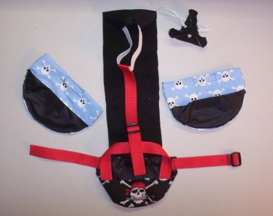 This Goose Diaper Holder Harness is made with Pirate Print, backed with a waterproof fabric and it is oh so cute. This Goose Diaper Holder can be lined with a sanitary napkin, a human baby diaper, a folded newspaper page.