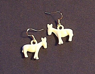 These are really cute little off White earrings. The wires are gold toned also. The earrings are approx. 1" x 1" and lightweight some type of a plastic. The photo is not good, we are having trouble with our not so great camera....but I love these earrings.