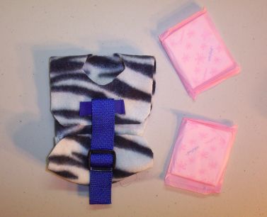 This one is for a Gosling Hatchling and will fit your gosling for a few weeks. It is Zebra Print and oh so cute. They grow so fasssssst! If it arrives and it would be a bit too big, wait a day or two (literally) and try it on your baby goose again. The Goose Diaper Holder comes to you with two Pantie Liners to get you started.