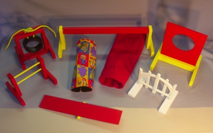 RED AND YELLOW EIGHT PIECE RAT AGILITY EQUIPMENT SET. Each piece is hand crafted.