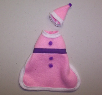 These little coats are made in a variety of ways. This one is a Cute Little Santa Inspired Holiday Suit in Pink and Purple fleece.