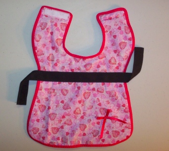 This is a cute little fleece lined Heart Print Dog Coat with a little red bow on the Hip for a tiny dog. The measurements are, from behind the neck to tail 9 1/2" and the waist will fit a dog with up to a 17" and is adjustable with velcro . The coat attaches with adjustable velcro. (This coat could also be worn by a rabbit, cat or a large guinea pig.)
