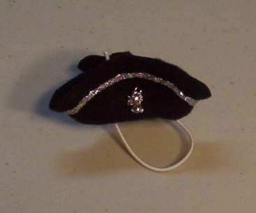 This DELUXE HAT is made in the trifold manner as my other PiRATe hats. This one has SILVER trim on the the brim with a cute little RATTIE CHARM sewn on the front.