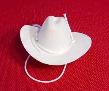 This is cute and even cuter with a Guinea Pig head under it. It is a Cavy sized cowboy hat. It stays on your pet's head with elastic. The elastic is left long when it arrives to you so that you can cut it or tuck it to fit your own Guinea Pig. If you have a dark colored Guinea Pig, use a permanent marker to color the elastic. Just let it dry well before putting the hat on your pet.