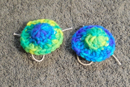 The hat stays on the animal's head with adjustable elastic. I left the elastic long so that you can move the knot to fit your animals. You can also color the elastic with permanent marker to darken it for darker colored pet.