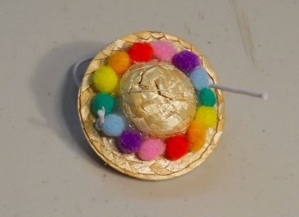 This is cute and even cuter with a rat head under it. It is a rat sized with pom poms all around and quite a Lady Rat Bonnet. It stays on the ratties head with elastic. The elastic is left long when it arrives to you so that you can cut it or tuck it to fit your own rattie.