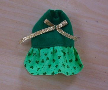 These little dresses are made in a variety of ways. These little outfits are so cute, I wish the photos showed the outfits better then they do. This one has a shamrock skirt with a bow from "the pot of gold".