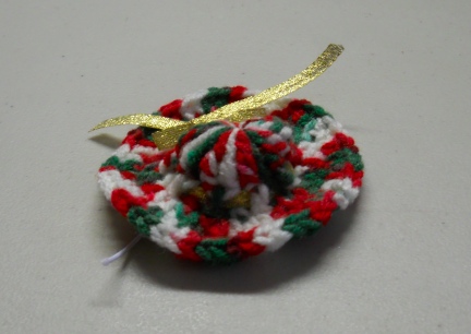 This little hand crocheted Christmas Bonnet has Gold Ribbon woven in and a Gold Bow in the back.
