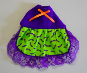 These little dresses are made in a variety of ways. This one is a Cute Halloween Print Dress with Purple Lace and a Orange White Bow! I wish the photos showed the outfits better then they do.