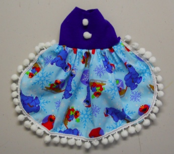 These little dresses are made in a variety of ways. This one is a Cute Sesame Street Print Dress with cute little Pom Poms! I wish the photos showed the outfits better then they do.