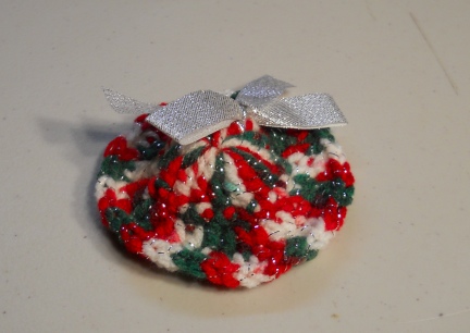 This little hand crocheted Christmas Bonnet has a Fancy Silver Bow in the back.