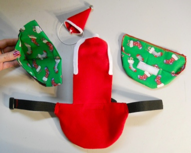 This Duck Diaper Holder Harness is made with A Red Fleece with White trim, it comes with A MATCHING HAT WITH RINGING SILVER BELL AS WELL AS TWO Christmas Stocking Print removable diaper inserts , backed with a waterproof fabric and it is oh so cute. This Duck Diaper Holder can be lined with a sanitary napkin, a human baby diaper, a folded newspaper page or other folded papers such as paper towels or other papers to be recycled.