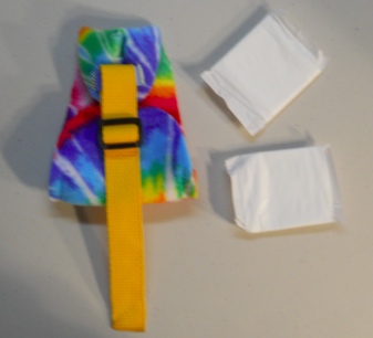 The Goose Diaper Holder I have designed is made of polar fleece. Polar Fleece is light weight, soft, has a bit of give/stretch to it and can be washed in the washing machine or by hand and hung to dry. Polar Fleece was created for sportsmen. You can wash out polar fleece, ring it out very well, and put it back on, even damp it will dry pretty quickly. When polar fleece first came out I was backpacking with and training and racing sled dogs....wonderful stuff. Before it, fabrics used would hold the water or wetness that sportsmen would encounter. Polar Fleece is non absorbent and perfect for Goose Diaper Holders.