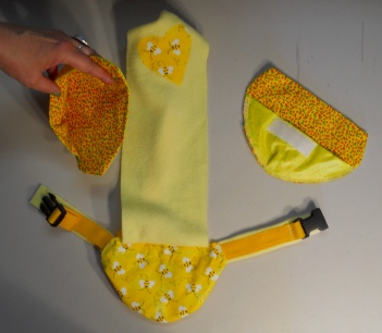 This Goose Diaper Holder Harness is made with Busy Honey Bee Print, backed with a waterproof fabric and it is oh so cute. This Goose Diaper Holder can be lined with a sanitary napkin, a human baby diaper, a folded newspaper page or other folded papers.