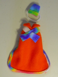 The Coat is approx 5" from behind the ratties neck to the tail and the waist is approx. 7" and will stretch just a bit and closes with velcro under the rat's waist. The hat stays on the rattie's head with adjustable elastic. For darker coated ratties you can use a permanent marker on the white elastic cord to darken it. Just make sure the ink is dry before putting it on the ratties neck.