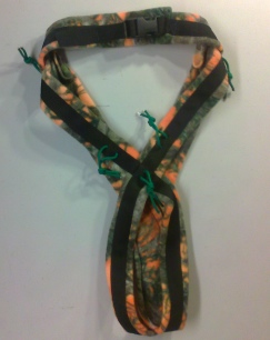 This photo is a close up shot of the Harness. You can see I used Red Colored Parachute Cord for the ties on this harness. You could untie and adjust the loops.
