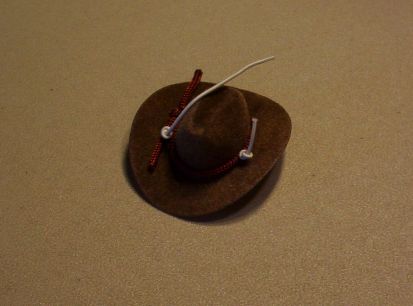 This is cute and even cuter with a rat head under it. It is a rat sized cowboy hat. It stays on the ratties head with elastic. The elastic is left long when it arrives to you so that you can cut it or tuck it to fit your own rattie.