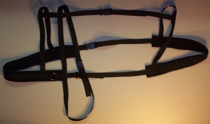 This is an easy to put on and off Wagon Harness for Goats. It has four quick release buckles, once set up to the goats size with easy adjusting, takes about 20 seconds to put on or take off the goat.