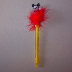This is a cute little Mouse, perhaps Micky Mouse Ink Pen with a Feather on the end that when moved in front of most ratties and played with, the ratties will learn to follow the feathers. The pen has a cap on the point and when used will light up.