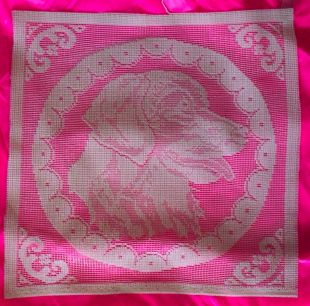 You can frame this, or use it on a table as a doily. Shown on pink, but any color you choose would show off this nice item.