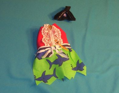 These items are new and have never been worn by or tried on by any rattie. But we did want to show off this photo of our nine week old Gypsy in her own PiRATe costume with sword!!