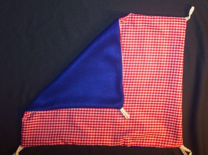 This item is a Red Checkered Print Hammock. It will hold one or several ratties while they sleep, eat or play on it hanging from your rat cage. It measures 15" x 18". One side of the Hammock is Blue Polar Fleece the other side is Red Checkered Print cotton type fabric and has loops for hanging.