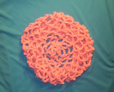 This item was patterned by me. I did not copy a pattern but came up with the way I make them by looking at photos of some snoods on line. The photo does not do the color well. The color is a very pretty coral pink.