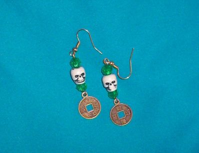 Skull & Coin Earrings with Green BeadsPrice: $4.95