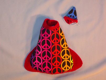 These little coats are made in a variety of ways. This one is a Cute Little Peace Sign Print over Red fleece.