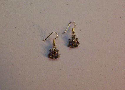 Who can resist cut little gold toned FROG earrings. The charms are approx 1/2" long from the bottom of the fish hook type earring holder.