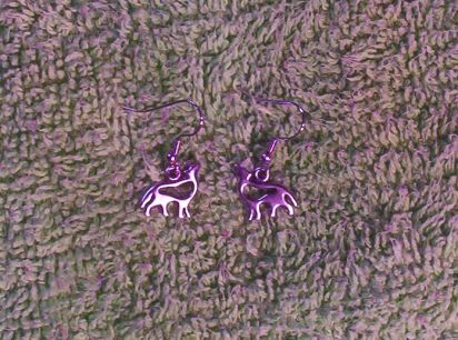 Silver toned Wolves. The charms are approx 1/2" and are hung from silver toned fish hook type earring holder.